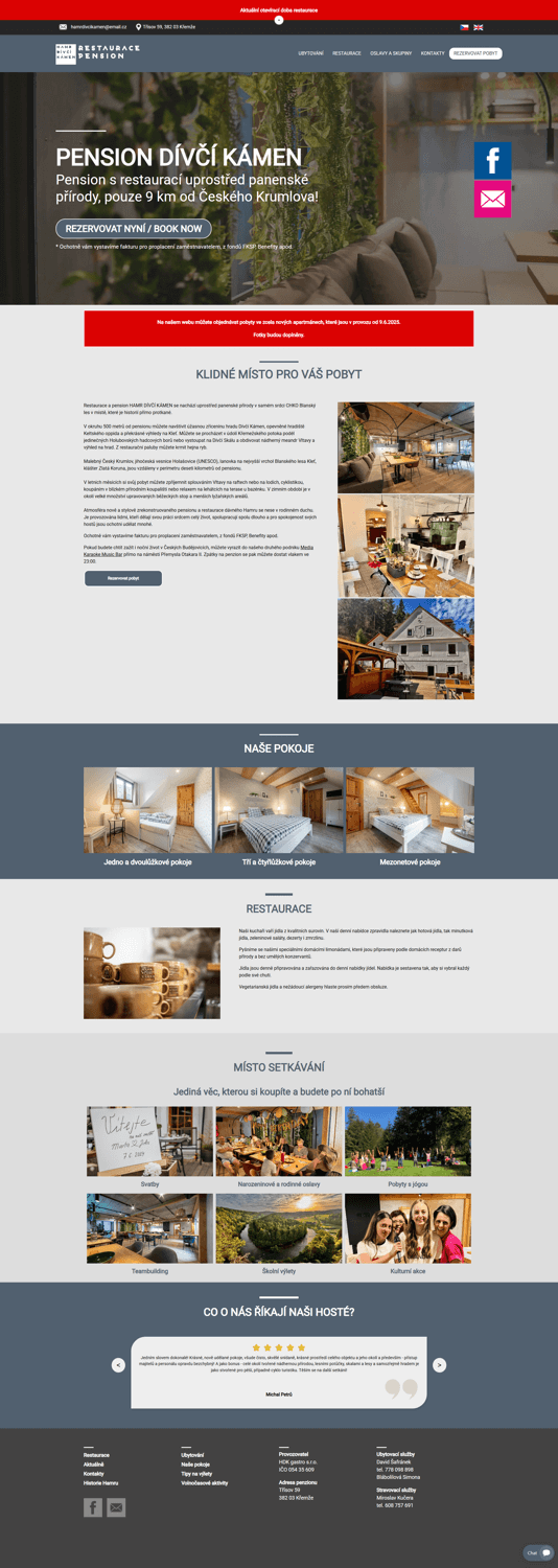 Web pro rodinný penzion a restauraci nacházející se v srdci jižních Čech, kousek od zříceniny hradu Dívčí Kámen.