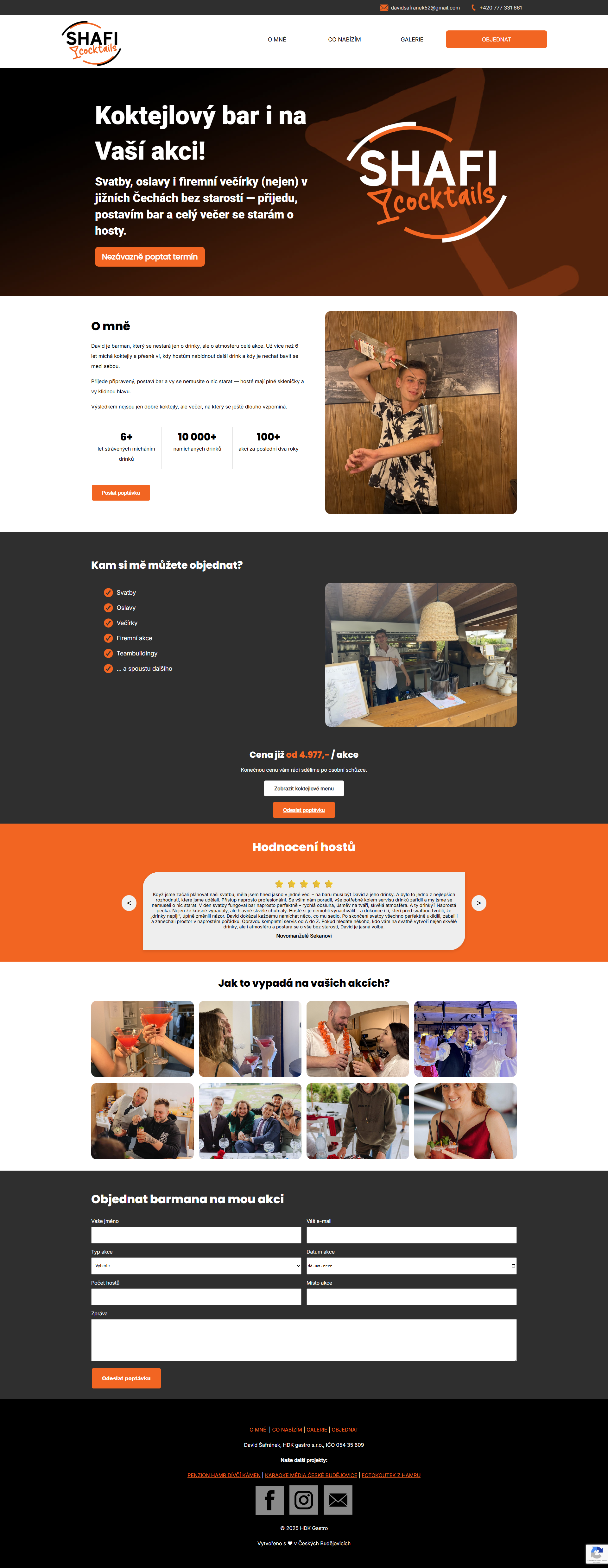 Web pro mobilní koktejlový bar na svatby, firemní akce i oslavy – cílem bylo vystihnout atmosféru značky a podpořit poptávky.
