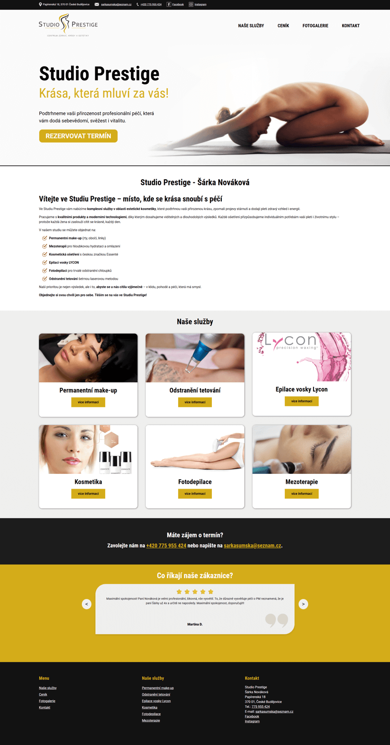 Web, který kombinuje estetiku s funkčností a odráží atmosféru prémiového beauty studia.