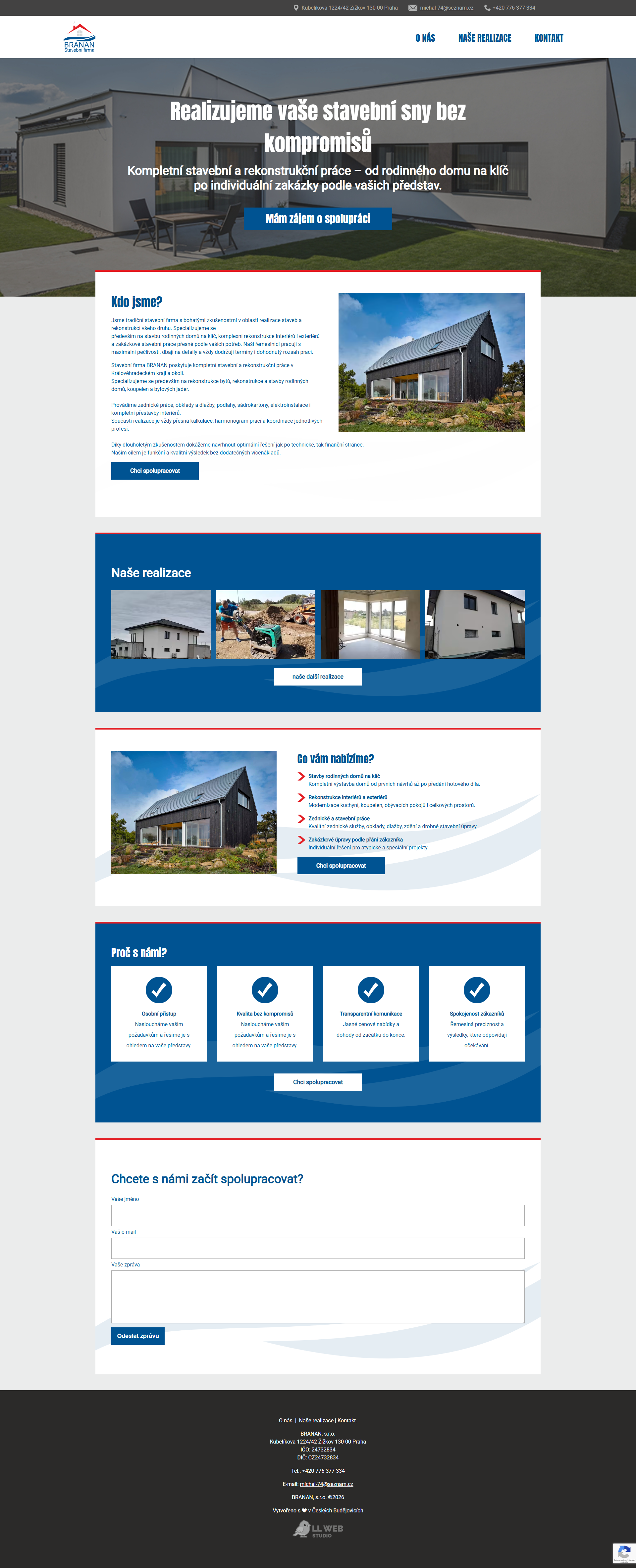 Firemní web stavební společnosti BRANAN zaměřené na stavební práce a realizace projektů pro soukromé i firemní zákazníky. Cílem bylo vytvořit důvěryhodnou online prezentaci podporující získávání nových zakázek.