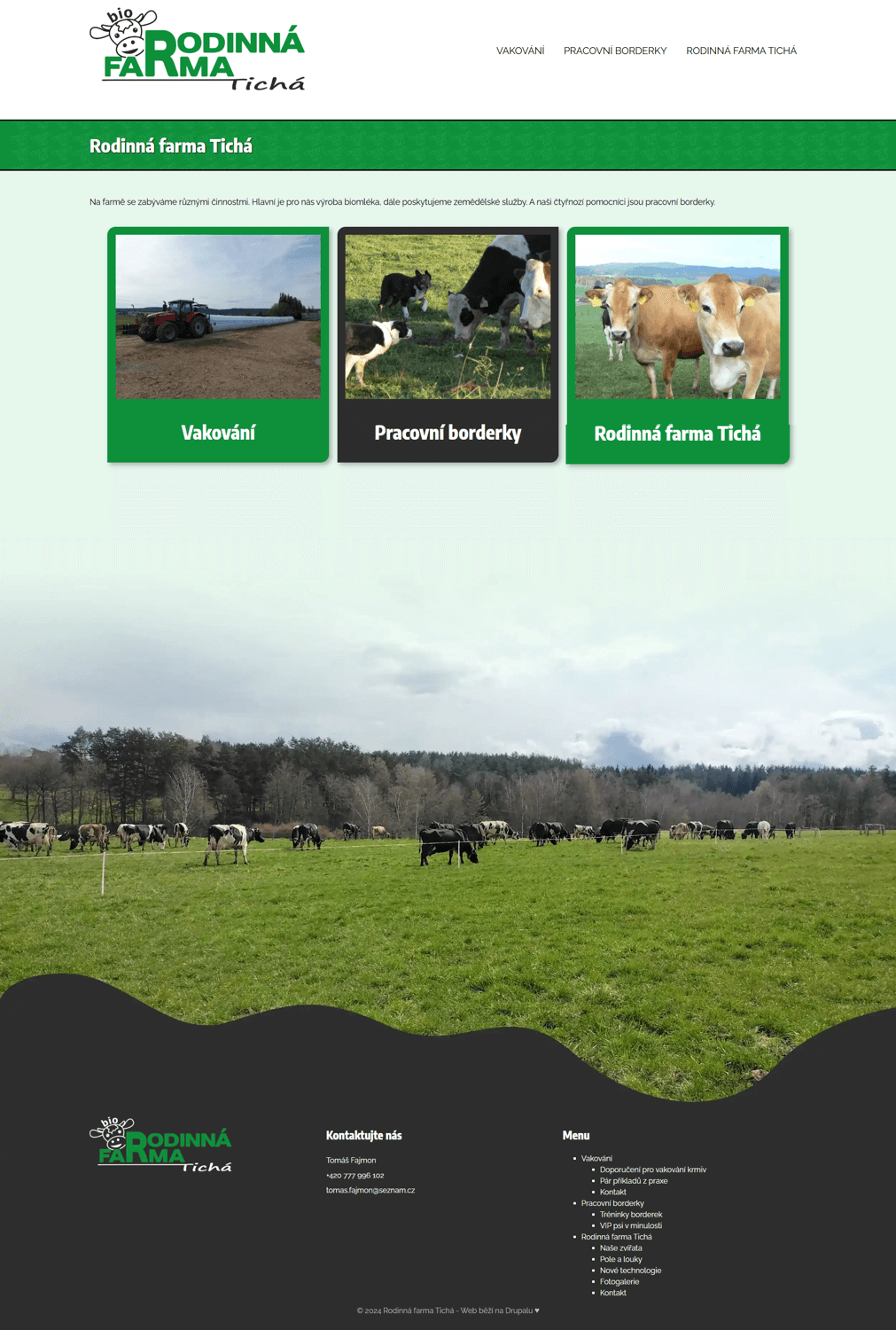 Web pro rodinnou biofarmu Tichá, která se věnuje chovu hospodářských zvířat, vakování krmiv a moderním technologiím ve farmaření.